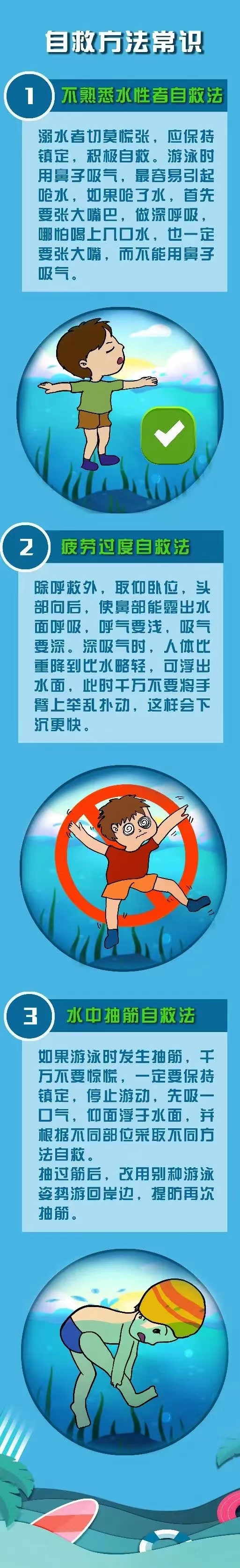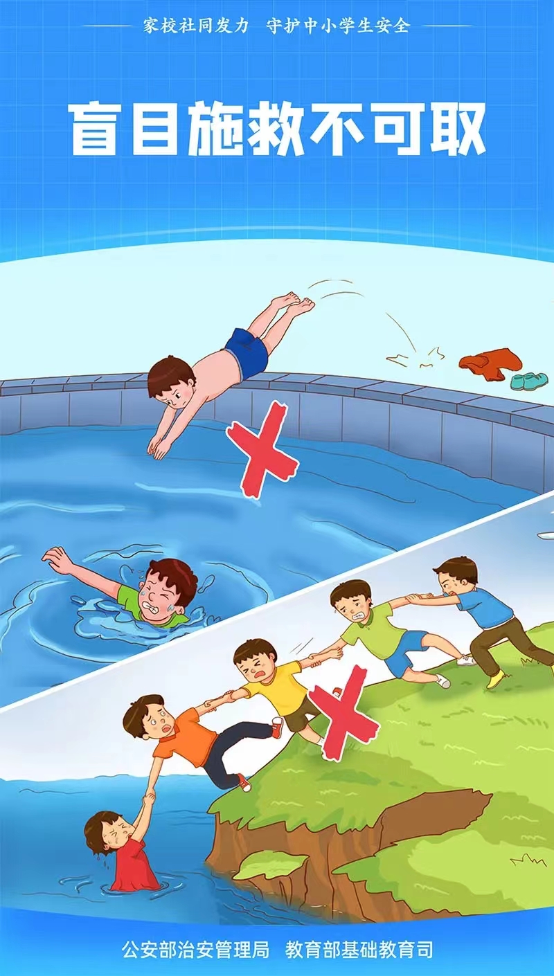 珍爱生命,谨防溺水。不私自下水游泳,不擅自与他人结伴游泳,不在无家长或教师带领的情况下游泳,不到无安全设施无救援人员的水域游泳,不到不熟悉的水域游泳,盲目施救不可取,智慧救援保平安。 【详情】