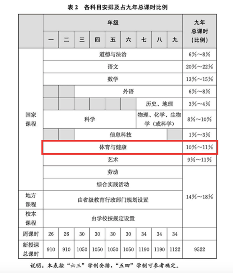 新课标将于2022年秋季学期开始正式施行。这其中,“体育与健康”课占总课时比例10%-11%,超越外语成为小、初阶段第三大主科。